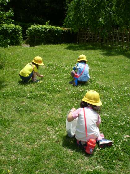 5月13日に,4歳児が園外保育に出かけました。行き先は,すぐ近所にある京都御苑。緑がいっぱいで,この時期は特にとっても気持ちよい場所です。