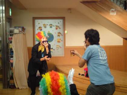 階段下にあるステージの前では黒い服を着た謎の人が現れマジックショーが始まりました!!近くにいた先生も飛び入り参加してショーが更に盛り上がっていました。