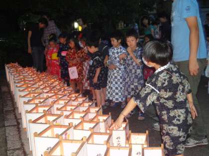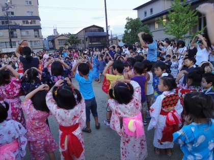 盆踊りができるか心配されましたが、子ども達が外にでると雨雲もさり…太鼓の音とともに盆踊りが始まりました!!