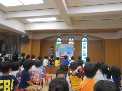 8月生まれのお友達は夏休み中に本当の誕生日が来ていたので,幼稚園の誕生会を楽しみに待っていてくれたことだと思います。8月生まれの皆さん,お誕生日おめでとうございました。