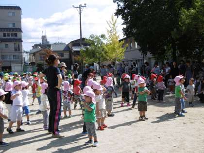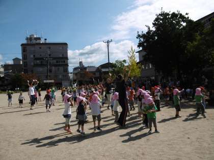 お天気が良すぎて暑いくらいでした。御所南保育園の子どもたちも一緒に参加してくれました。元気いっぱいかけっこした運動会でしたね。参加していただいたみなさん,有難うございました。