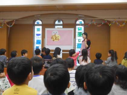 今日は,10月生まれの誕生会でした。「ふしぎなポケット」の歌に合わせて,ポケットの中から出てきたすてきなビスケットを誕生児にプレゼントして紹介しました。ビスケットを受け取った子どもたちは,とても嬉しそうな表情を浮かべていました。とても不思議なポケットのすてきな誕生会でしたね。