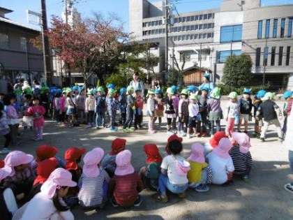 5歳児の子どもたちは,わくわくしながら,待賢幼稚園に向かいました。そして,待賢幼稚園のお友達や先生たちに迎えていただいて,赤ちゃんに出会いました。