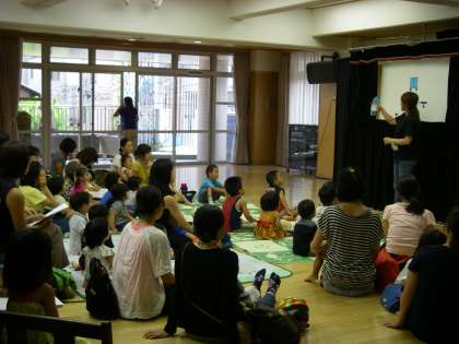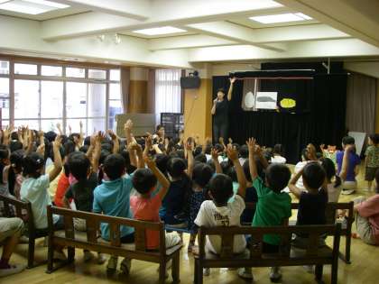 (人形劇は午前中,在園児も鑑賞しました。クイズもあって大変盛り上がりました。)