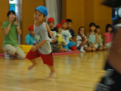 繰り出しのほうが,一人ひとりの姿がよく見えるので,見ている子どもたちの応援の熱も高まります。ただし,次に出てくる人がちゃあんとよく見ていないと,自分の出番のときに出るのが遅れてしまいます。