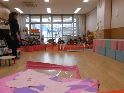 もも組のクッキー屋さんは,トッピングがとても上手です。生地の上にチョコレートやクリームを小さく切ってのせてつくります。「わたしが紙を切るね」「じゃあ私は毛糸を切るね」と友達と一緒に楽しそうにクッキーをつくっています。そしてトッピングしたクッキーはオーブンに入れて「早くできないかな」と楽しみに焼けるのを待ちます。