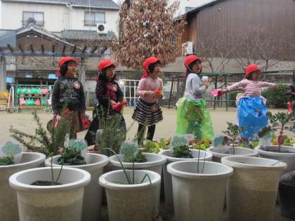今日も,時折雪や雨が降る寒い日となりました。お昼になると再び雪が降り出しましたが,園庭にやってきて遊んでいる子どもたちがいました。すると,ちゅうりっぷ組からプリンセスたちが園庭にやってきて,音楽に合わせて踊り始めました。踊りを始めると魔法がかかって,ますます雪が舞いました。先生が「雪が降っていたのは魔法をかけていたからなのね!」と言うと,プリンセスたちは嬉しそうな表情を浮かべてとても楽しそうでした。