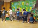 すみれ組は自分たちでセリフや踊りを考えていき,遊びを進めてきました。今日はお家の方に『ガンバとみんなの冒険』を見ていただき満足したようでした。5歳児は合奏も楽しみました。日に日に楽器の音がそろっていくことが感じられ,今日を迎えました。
