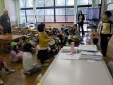 「しょうがっこうはたのしいよ のかい」の招待状をもらった5歳児。もうすぐ自分たちも一年生になるんだという期待をもち,小学校へ行くことを楽しみにしていました。出迎えて下さった小学校の先生に教室へ案内してもらうと少し緊張の面持ち。でも,一年生のお兄さん,お姉さんが優しく名前を呼んでくれると安心した様子でした。一年生が考えてくれた,体験メニューはどれも魅力的で,ランリュックを背負っての学校探検や給食の献立についてのクイズ,昔遊びの披露,鍵盤ハーモニカの実演等・・・いろいろやってみることで子どもたちは自然と一年生と仲良くなり,小学校の楽しい雰囲気を感じることができました。もうすぐ一年生。小学校へ行くのが楽しみです。