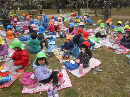 今日は,幼稚園の子どもたちみんなで子どもお別れ会として,京都御苑へお別れ遠足に行きました。