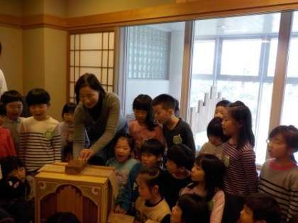 最後に鳴奏部分に穴の開いたカードを差し込み、ハンドルを回して音楽を楽しむペーパー式手回しオルゴールで「さんぽ」の曲を演奏していただき,子どもたちのにぎやかな歌とともにコンサートが終わりました。