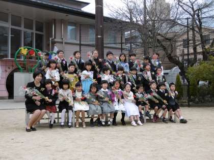 式にはお家の方は勿論のこと,たくさんのお客様も来てくださりお祝いをしてくださいました。子どもたちは心地よい緊張感の中ではありましたが笑顔で,大事な大事な修了証書をいただきました。修了証書を持って誇らしげに歩く姿に本当に大きくなったなと改めて感じました。