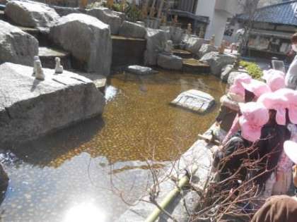 六角堂に到着すると,大きくて真っ白な白鳥が子どもたちのことを出迎えてくれました。池の水面をスイスーイと気持ちよさそうに泳いでいる白鳥に「おーい,こっちだよ」「赤ちゃんはいますか〜?」と声をかけていました。そして,たくさん並んでいるお地蔵様を一つ一つ見ながら「かわいい帽子かぶってるね」「あのお地蔵様,赤ちゃん抱っこしてはる!」など,色々なことを発見したり感じたりする姿が見られました。