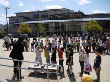 のぼりきった瞬間は風が吹いていなかったのですが,しばらくするとこいのぼりが風を運んできてくれたのか,空高くこいのぼりが元気に泳ぎだしました。子どもたちからも「こいのぼりがあがった」「元気に泳いでいるよ」と歓声が起こり,一斉に空を見上げて大喜びし,賑やかなセレモニーになりました。。