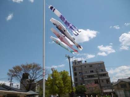 澄み渡る青空が気持ち良く,空を見上げたくなるような季節になってきました。竹間公園ではこいのぼりのセレモニーが行われ,5歳児の子どもたちが参加しました。
