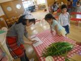 そして,たくさん収穫できたたまねぎをどうやって食べようかと相談するとカレーや焼きそば,スープやお味噌汁にしてみたいというアイデアが出てきました。そこで,ゆり組,すみれ組の会議の結果,カレーは幼稚園で育てているじゃがいもができてからつくることにして,まずはお味噌汁にして食べようということになりました。お味噌汁にはたまねぎの他に何を入れたいか考えると,「わかめ好き」「出汁がいる」「お味噌もいる」と家庭での経験から思いを出してくれました。