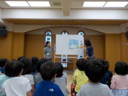 その後には、「そらいろのたね」というお話を聞きました。中京もえぎ幼稚園の園庭や1人1人の鉢に植えた野菜もみんなで力を合わせて大切に育てていきましょうね。