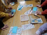 2月のつくってあそぼうは,こどもみらい館の芝井先生とはさんだものが移動する不思議なマジックカードを作りました。