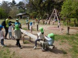 5歳児で、京都御苑までお散歩遠足に出かけました。年長児になって初めての遠足を楽しみにしていた子どもたち。今日は、公園まで出かけました。公園では、チョウを見つけたり、遊具で遊んだり、だるまさんが転んだや鬼ごっこで体を動かして遊んだりしました。道中には、タンポポや桜もたくさん咲いていて、「きれいだね」「お花見したいな」と嬉しそうに話していました。たくさん歩いたので、少し疲れもみられましたが、安全に気をつけて行くことができました。