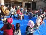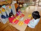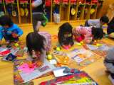 3歳の子ども達が持ってきたビニール袋を使って、みんなで凧をつくりました。 ビニー...