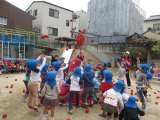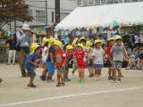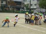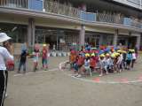 綱引きを楽しんだ後は,4・5歳児がリレーを楽しみました。 兄弟組を2チームに分...