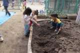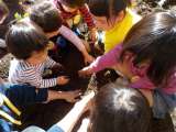 4・5歳児でほしファーム(元明倫幼稚園)へサツマイモ堀りとタマネギの苗を植えに...