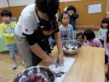 さつまいもの味噌汁をいただきました(3・5歳児)