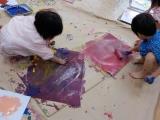 今日は3歳児ちゅうりっぷ組で絵の具の“ぬたくり遊び”をしました。好きな色を見つ...