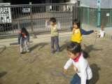 4歳児は朝,なわとびをもらいました。年長さんはもっていて,時々 年長さんのクラス...