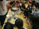 4歳児がポップコーンをつくりました。秋に収穫したのをやっと誕生会で食べることに...