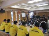 22年度から入園する子ども達が幼稚園に来てくれました。遊戯室で園児の歌を聞いた...