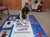 昨日、年長児の掛け軸全員分が完成しました。仕上げにそれぞれ自分の名前をかきます...