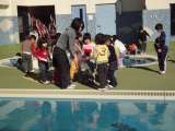 寒ーい朝、3階のプールに上がるのを楽しみにしています。 「あー氷できてる」 と子...