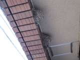 バス停の前の家の軒先にツバメの巣があります。入り口に新聞紙が敷かれていて、よく...