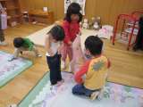 ちゅうりっぷ組の発育測定に年長のすみれ組がお手伝いに行きました。もも組にはゆり...