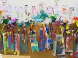 風車も鯉も吹流しもみんなお手製、一人ひとりの大きいオリジナルこいのぼりができま...