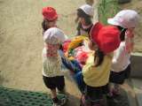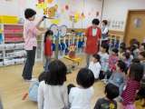 今日は2歳児のお友達が遊びに来るこぐま組の日でした。 広い遊戯室で,ままごとや...