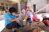 5月28日 もも組の希望登園日、2回目でした。 先生と一緒に砂山にジョウロやバ...