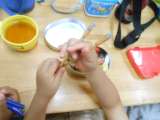 七夕の話をしてから親子で七夕製作をしました。 親子で「星人形の顔どんなんにする...
