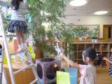 幼稚園の玄関に巨大なものが出現(もえぎパドリの皆さんが作成中!)