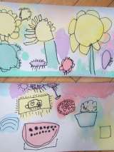 今日は朝から雨が降ったり晴れ間が出たり変なお天気でした。 3歳児は体いっぱいに絵...