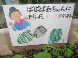 月曜日にやってきた台風で,幼稚園北側の花壇のヒマワリが二本,根元から折れてしまい...