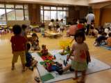 今日は朝から大雨。「ザバーって降ったよ!」と,大雨の中も元気に夏休みのなかよし...