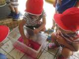 昨日消防車への思いを膨らませながらした絵の具遊び。せっかくできた大きな消防車。...
