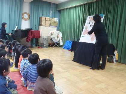 すぐに覚えられる歌で一緒に歌いながらお話を見せていただき、子どもたちはとても楽しんでいました。