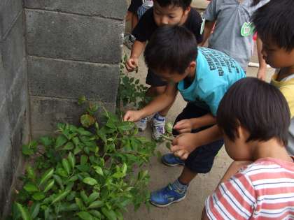 そして,昨日捕ってきたバッタを虫かごから幼稚園の庭に逃がしました。バッタがピョンピョンあちこちで飛んでいます。バッタも広い庭に出ることができて,きっと喜んでいるよね。