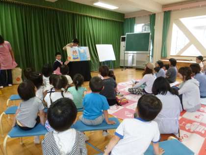今日は、さくら会の方に来ていただき、お楽しみ会をしました。たんぽぽ組(3歳児)の子ども達も一緒に見ましたよ。