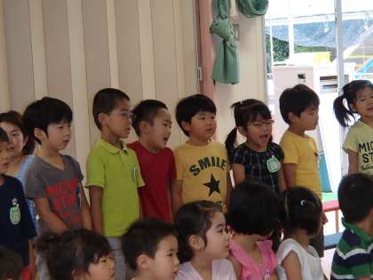 今日は,6月生まれの子どもたちの誕生会でした。お家の人や友達に囲まれ,とてもうれしそうでした。6月生まれの先生たちも一緒でよりいっそう盛り上がりました。ゆり組(5歳児)の子どもたちが今,クラスで歌っている♪にじの歌も聴かせてもらいました。素敵な歌声が響き,幸せな気持ちになりました。