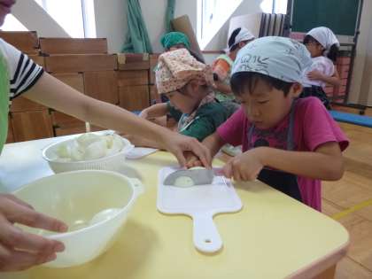 「上手に切れた」「家でも切ったことあるよ」「こんなくらいの大きさでいいかな」と考えながら楽しみながら切っていました。