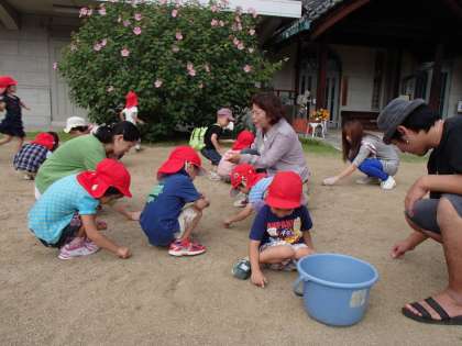 今日は,運動会に向けて学校歴史博物館のグラウンドの草抜きや石ころ拾いをしました。保護者の方にもご協力いただき,親子でコツコツと取り組んでいただきました。早朝の少しの時間ですが,とてもすっきりとしました。このようにみんなで協力してグラウンドをきれいにして,運動会を迎えるのだということがわかり,子どもたちにもよい経験になりました。この後,かけっこをしましたが,より一層意欲的に走り,気合いが入っていました。保護者の皆さま,ご協力ありがとうございました。